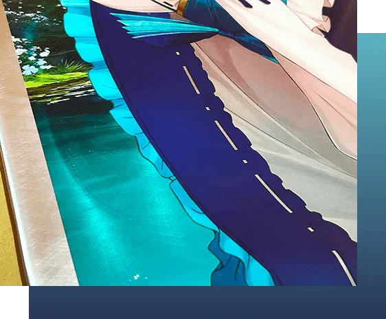 『シャイニング・レゾナンス』で神秘的な存在感を放つエルフの歌姫・キリカ。レゾナンス10周年という記念に描かれた、キリカの魅力が詰まった記念作。金属で版画を作成することで、風景の奥行き、服の生地の艶やかさが引き立ちます。