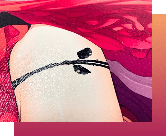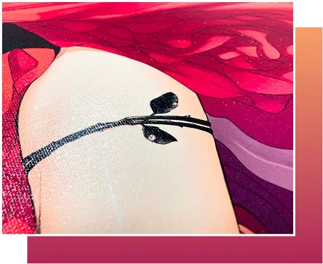 今回『キャンバス地』を使用したリマスター版スペシャルエディションとして展示されます。紙版画とはまた異なる、艶と奥行きをぜひ感じてみてください。絵をおさえるマット部分にもデザインを施した、額装のこだわりも必見です!